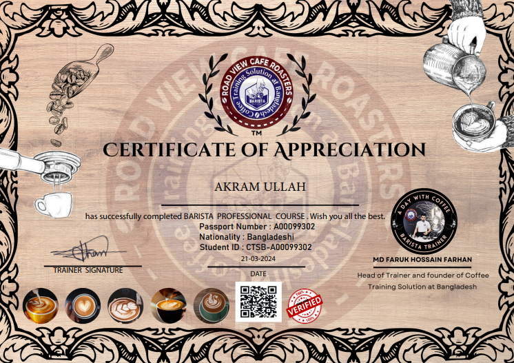 Congratulation. Yes, we have verified these achievements. Has successfully completed Barista course.