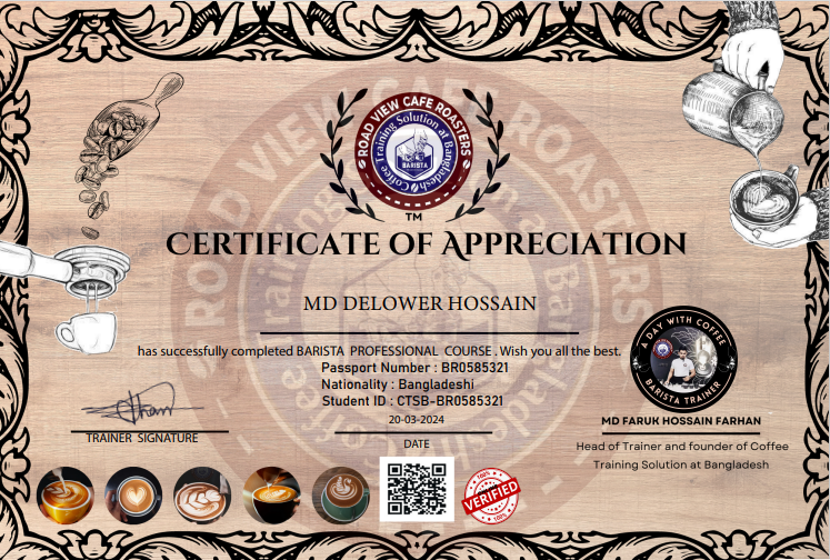 Congratulation. Yes, we have verified these achievements. Has successfully completed Barista course.