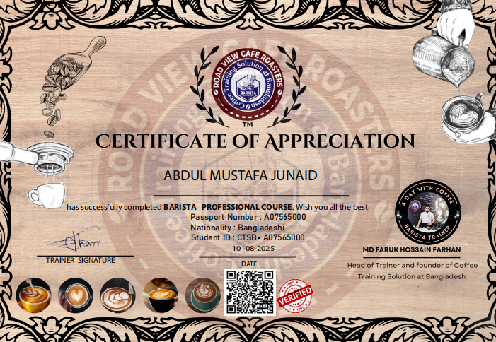 Congratulation. Yes, we have verified these achievements. Has successfully completed Barista course.