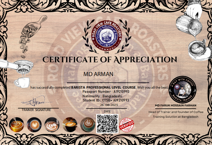 Congratulation. Yes, we have verified these achievements. Has successfully completed Barista course.
