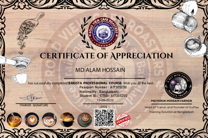 Congratulation. Yes, we have verified these achievements. Has successfully completed Barista course.