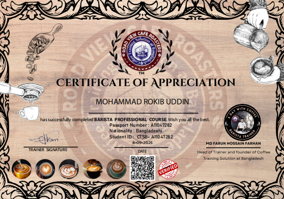 Congratulation. Yes, we have verified these achievements. Has successfully completed Barista course.