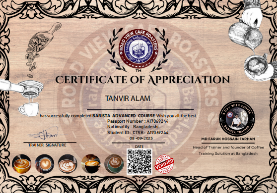 Congratulation. Yes, we have verified these achievements. Has successfully completed Barista course.