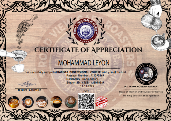 Congratulation. Yes, we have verified these achievements. Has successfully completed Barista course.