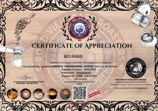 Congratulation. Yes, we have verified these achievements. Has successfully completed Barista course.