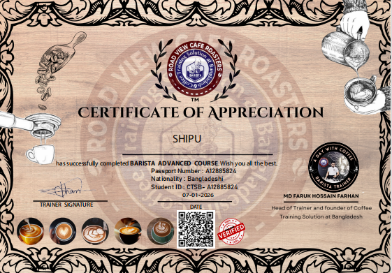 Congratulation. Yes, we have verified these achievements. Has successfully completed Barista course.