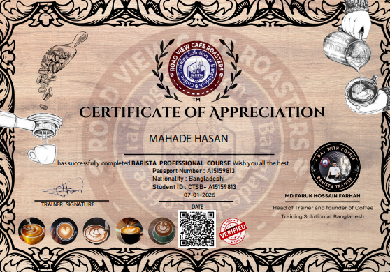 Congratulation. Yes, we have verified these achievements. Has successfully completed Barista course.